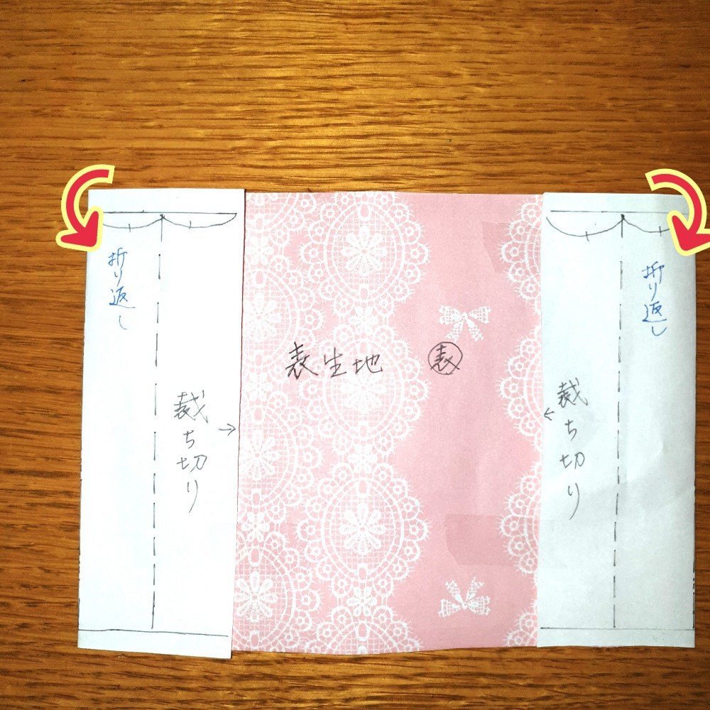 表生地、裏生地ともに上下のみ縫い代をとります。
