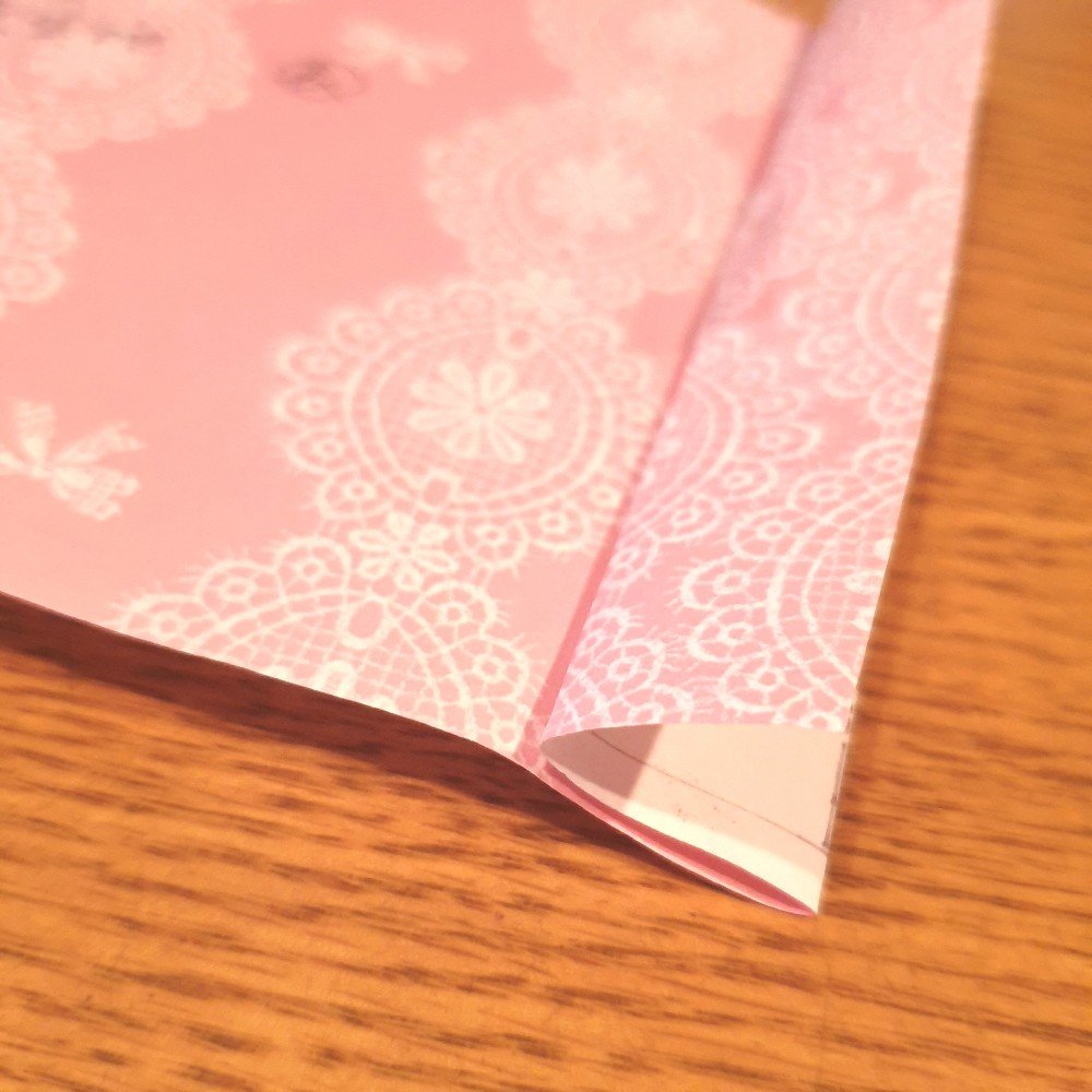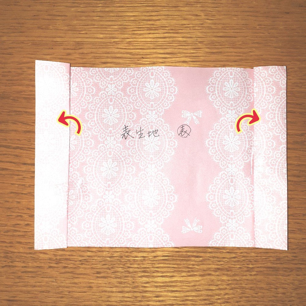 一度裏返したら、表紙を入れる折り返し部分をさらに裏返します。